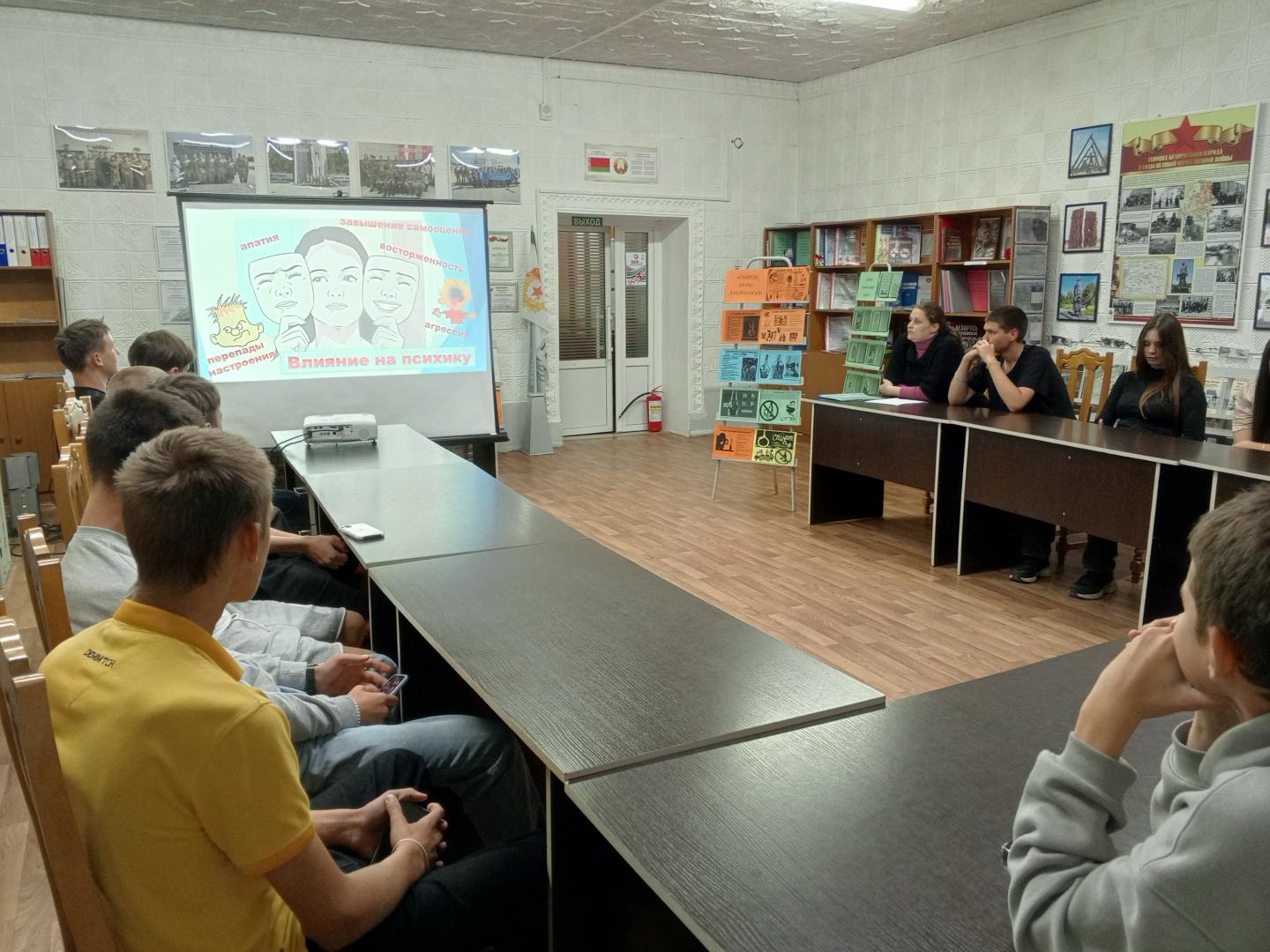 23 сентября 2025 в библиотеке колледжа прошел профилактический час «Глоток беды - алкоголизм». Учащиеся узнали как действие алкоголя сказывается своим губительным влиянием на качестве и количестве нашей работы,на нашем здоровье, в том