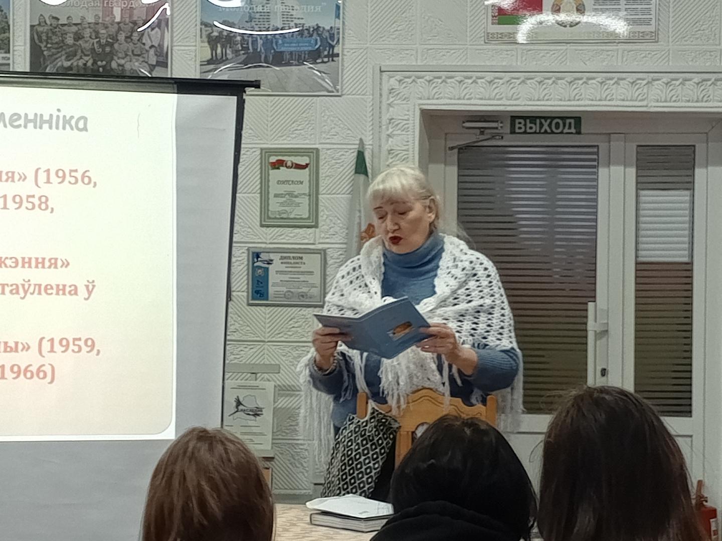 Особый интерес вызвал у учащихся выступление племянницы писателя Лилии Кравченко, которая поделилась личными воспоминаниями о своём знаменитом родственнике. Она рассказала о его характере, привычках и том, как он относился к своему творчеству. Её рассказ вызвал живой интерес у аудитории и стал эмоциональной кульминацией мероприятия. В завершение мероприятия учащиеся ознакомились с тематической выставкой книг Ивана Мележа, а также с фотографиями предоставленными Лилии Кравченко.