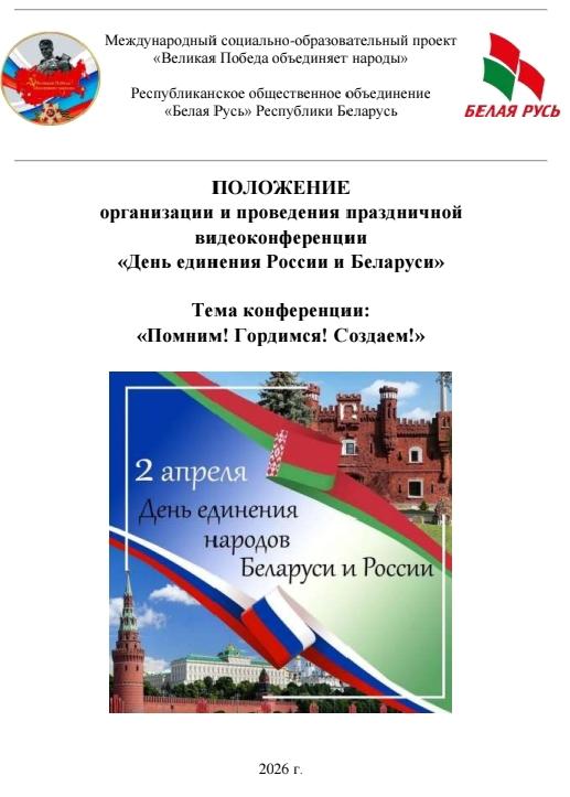 2 апреля 2026 в 11.00 в рамках международного социально-образовательного проекта «Великая Победа объединяет народы» отряд «Молодая гвардия" принял участие в праздничной видеоконференции "День России и Беларуси",посвященной Дню единения народов России и Беларуси. Тема конференции: "Помним!Гордимся!Создаем!» В работу телемоста включились молодежь и ветеранские организации, учебные организации и общественные объединения, учреждения культуры России и Беларуси.Прошла встреча городов-побратимов Минск-Новосибирск-Пятигорск, Рогачев-Новоалександровск, Бобруйск-Санкт-Петербург.