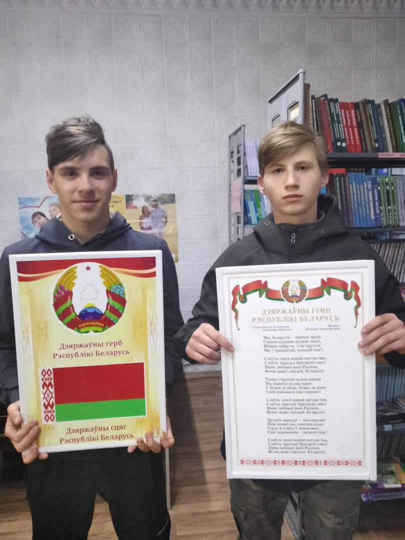 4 мая 2021 года библиотекарь провёл час геральдики «С чего начинается Родина». Ежегодно 10 мая отмечается праздник Государственного герба, флага и гимна РБ. Атрибутами любого суверенного государства является флаг, герб и гимн. Эти символы отражают исторические, духовные и нравственные черты нации, особенности культуры нашего народа. Сегодня учащиеся познакомились с историей возникновения символов нашего государства, определили значения эмблем, изображённых на гербе и флаге, а так же значения их цветов. Вниманию учащихся была предложена выставка с государственной символикой РБ. Сегодня наши ребята осознали, что символы белорусского государства — это наша отличительная черта для всего мира и предмет нашей гордости.
