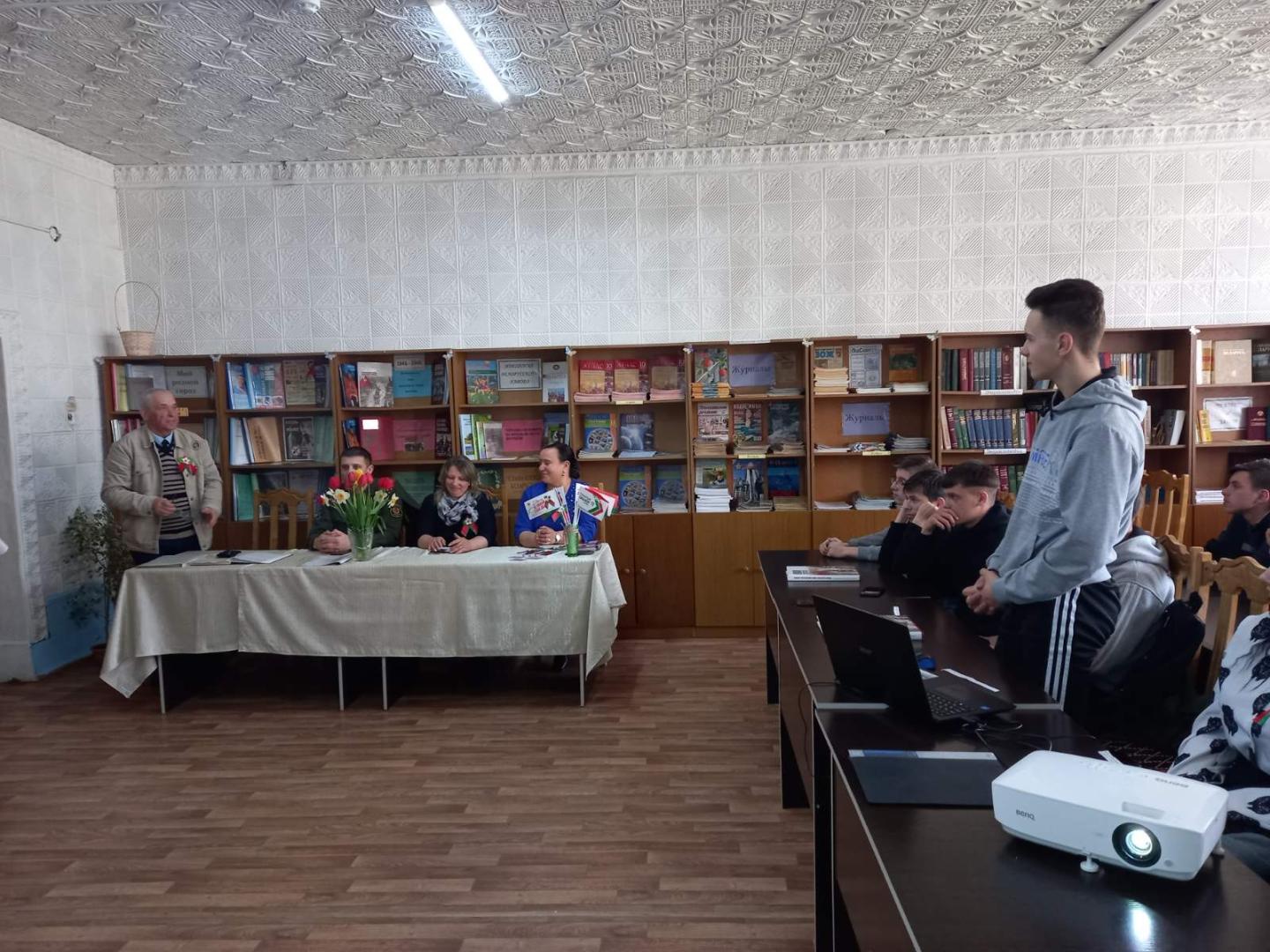 Накануне Дня Победы в лицее состоялся диалог поколений в рамках республиканского патриотического проекта «Цветы Великой Победы». В мероприятии приняли участие заместитель председателя ветеранской организации Хойникского района М.И.Блищ, начальник группы призыва военного комиссариата Хойникского и Брагинского районов П.В.Скачинский и первый секретарь РК ОО «БРСМ» Л.А.Гаркуша.