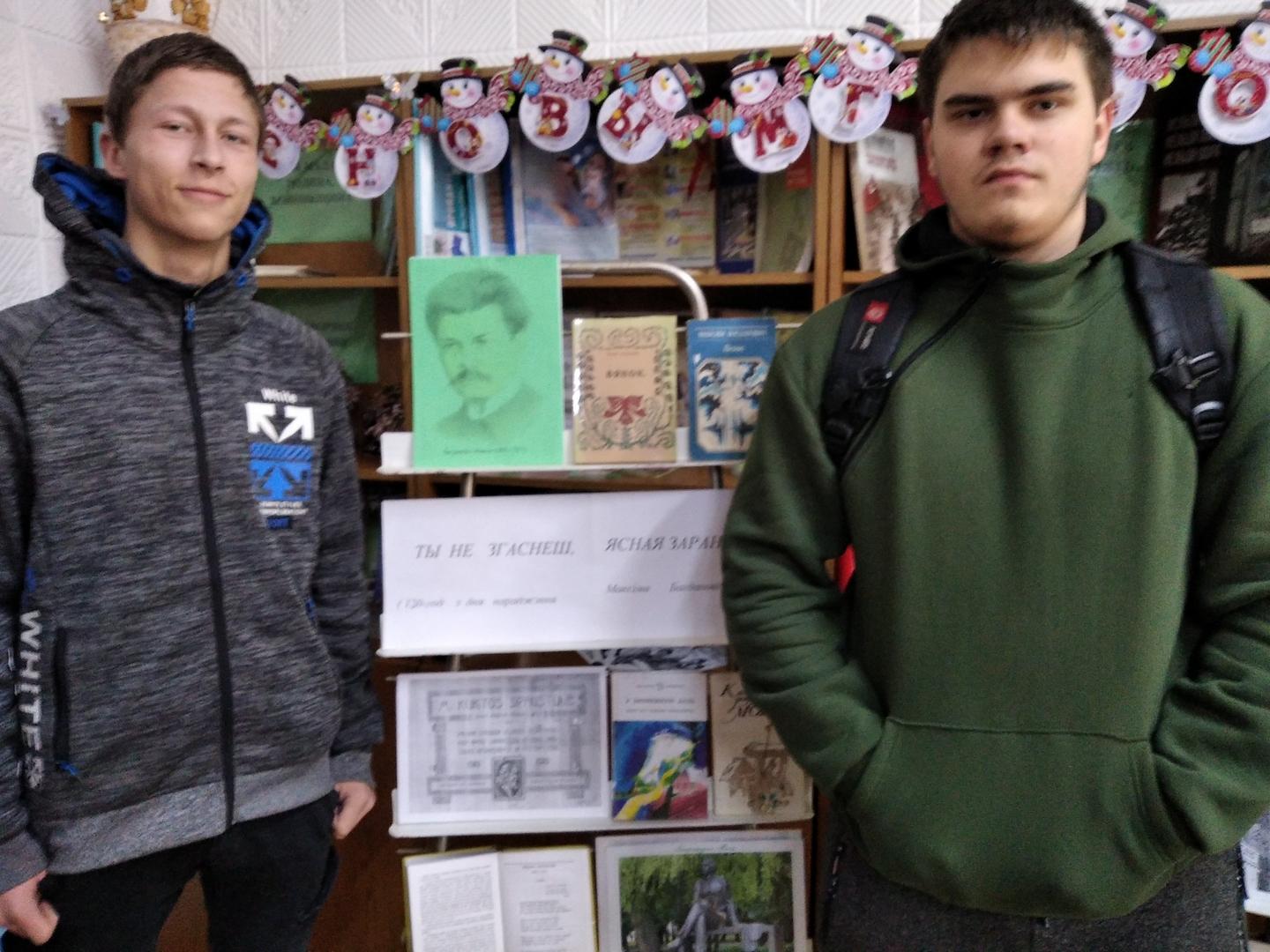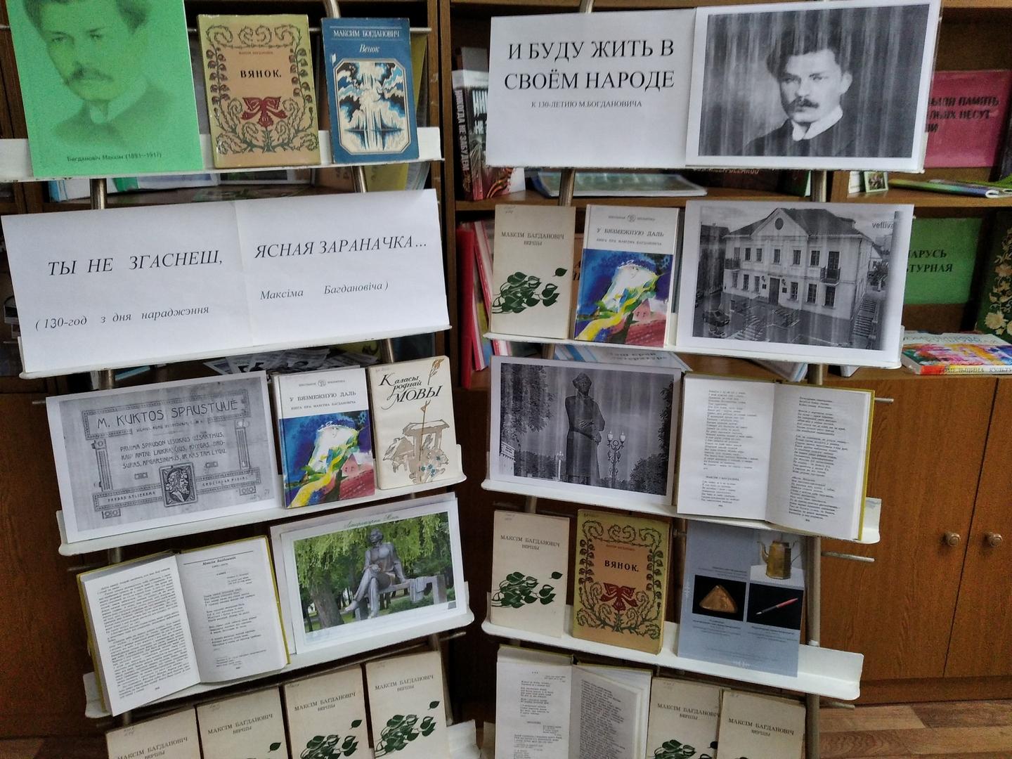 6 декабря 2021 года библиотекарь провел литературный час «И буду жить в своем народе», посвященный 130-летию Максима Багдановича. Литературное наследие М.Багдановича значительно: сборник «Венок» изданный в 1914 году, пятьдесят с лишним стихотворений, большое количество критических и публицистических статей, напечатанных в разных периодических изданиях. В институте белорусской культуры сохранилось 150 стихотворений писателя. Он прожил недолгую жизнь, но за это время успел сделать для белорусской литературы так много, как никто другой. Была оформлена книжная выставка.
