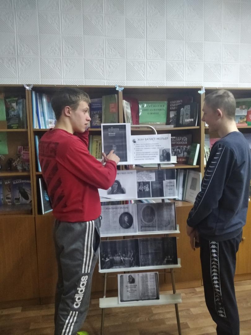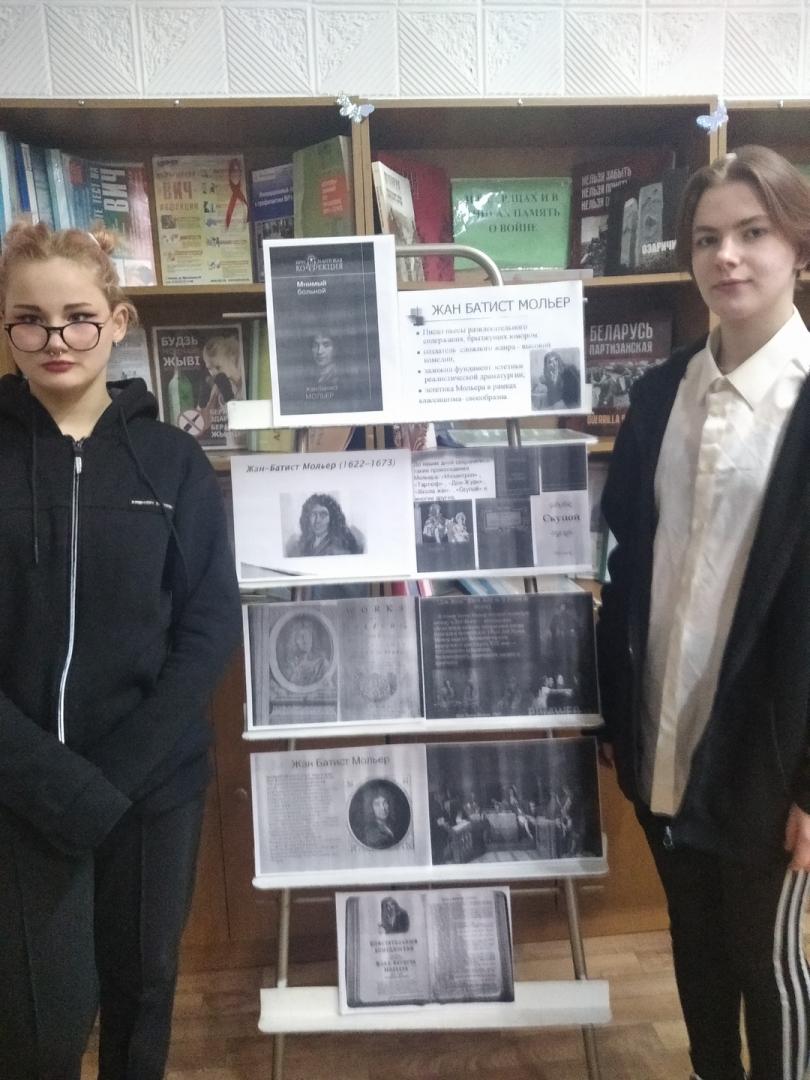 31 января 2022 г. библиотекарь провел вечер-портрет к 400-летию Жан Батиста Мольера «Как слово весело твое, как колет шуток острие». Мероприятие посвящено творческому пути, французского гения ,мировой литературы Жану Батисту Мольеру. Ребята увидели богатейшее творческое наследие ,полное подъемов и падений, успехов и испытаний и всенародной любви, жизненный путь писателя-драматурга, актера, режиссера и директора собственного театра. Особый интерес представляет художественная биография Мольера. Комедии Мольера любимы не только белорусскими читателями, но и зрителями. Была оформлена выставка.