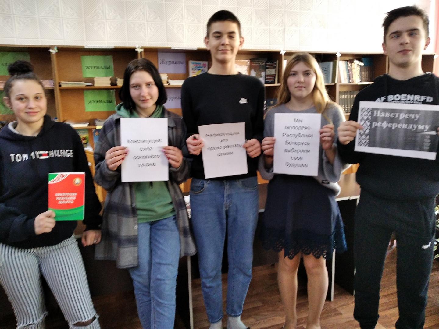 3 марта 2022 года библиотекарь провел информационный час «Конституция — в будущее вместе». Конституция Республики Беларусь является основным документом государства. Здесь записаны правила, определяющие жизнь нашей страны, права и обязанности ее граждан. Благодаря Конституции каждый человек может чувствовать себя защищенным, зная, что его права и свобода не будут ущемлены. Многим нашим учащимся исполнилось 18 лет, они выросли в новой, независимой стране, они опора нашего государства и понимают ту ответственность, которая возлагается на них. И очень важно что с такого возраста ребята вникают в исторические процессы, которые происходят в нашем государстве и они проголосуют на референдуме.