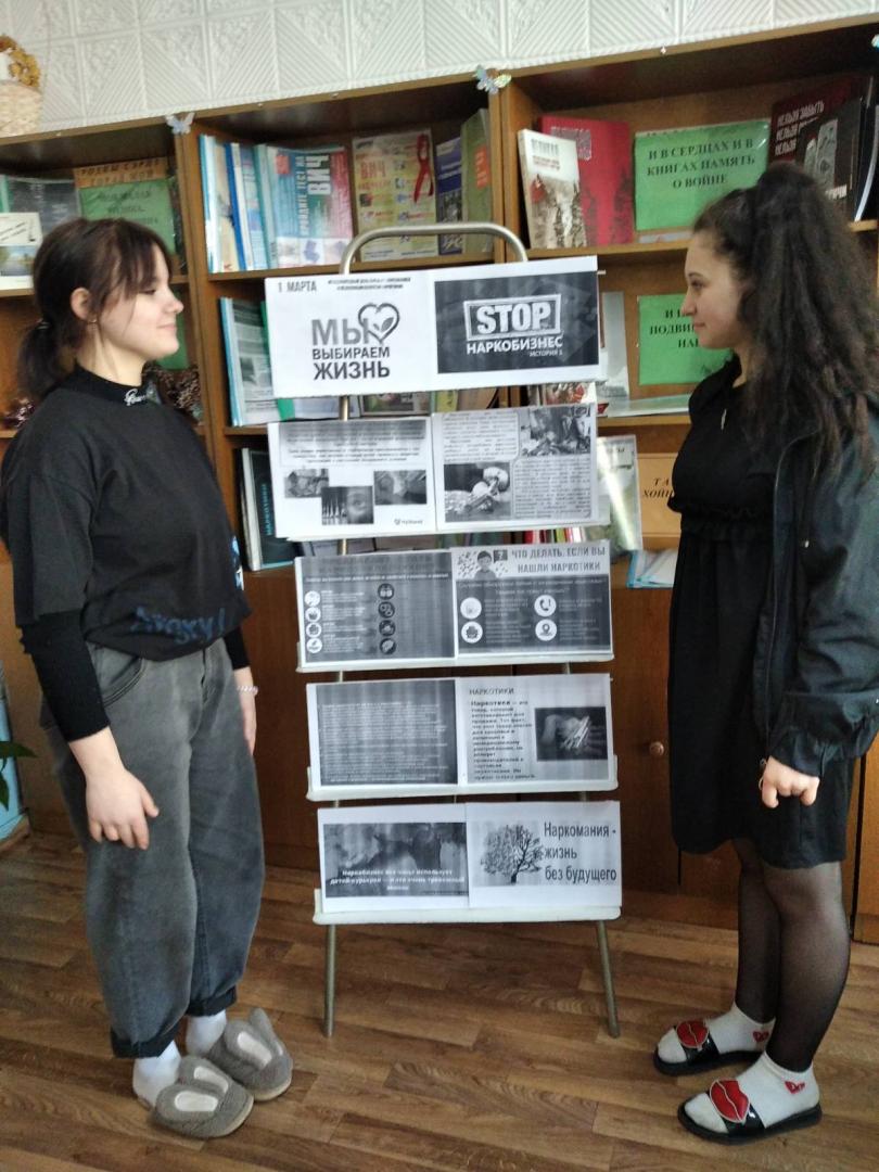 С 1 марта по 10 марта 2022 года библиотекарь оформил выставку в рамках областной декады по противодействию преступлениям в сфере незаконного оборота наркотиков «НаркобизнесSTOP». Сегодня ребята еще раз убедились о вреде наркотических веществ, огромной опасности их употребления и фатальной закономерности жестокой расплаты за это.
