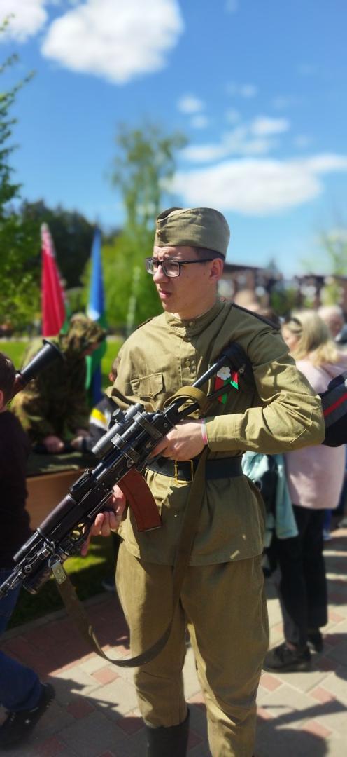 9 мая 2022 г, лицеисты отряда «Молодой гвардии», приняли участие в праздничном торжестве в городском парке, посвященном 77-й годовщине Великой Победы. Ребятам понравились показательные выступления кинологического центра и 103-й отдельно гвардейской воздушно-десантной бригады, новейшее военное оружие они смогли рассмотреть и даже подержать, подкрепились солдатской кашей. Присутствовали на возложении цветов с ветеранами ВОВ в деревне Дворище.