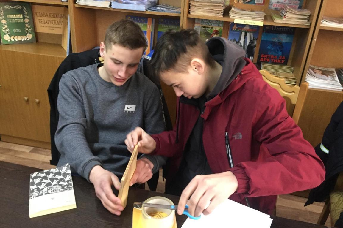 в лицее организована временная трудовая занятость учащихся в рамках трудового проекта от УТЗиСЗ Хойникского райисполкома. В проекте задействовано 20 учащихся, которые заняты ремонтом книг в библиотеке лицея и пошивом постельного белья для нужд общежития.