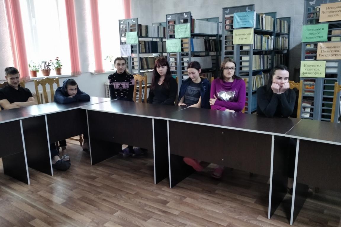 В библиотеке состоялась беседа-диалог «Дорожите жизнью» по профилактике суицидального поведения среди молодежи, с врачом-психиатром Жуком Евгением Михайловичем. Учащиеся задавали ряд вопросов касающихся необдуманного поведения в подростковой среде и пути их разрешения.