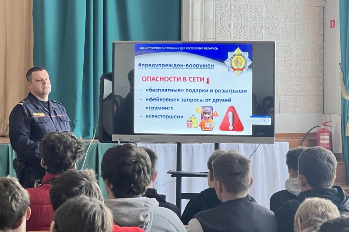 Мероприятие проходило под острым и актуальным названием: «Как в Интернете не попасться в преступные сети?». Сергей Михайлович в доступной форме разобрал с учащимися основные угрозы, подстерегающие молодежь во всемирной паутине.