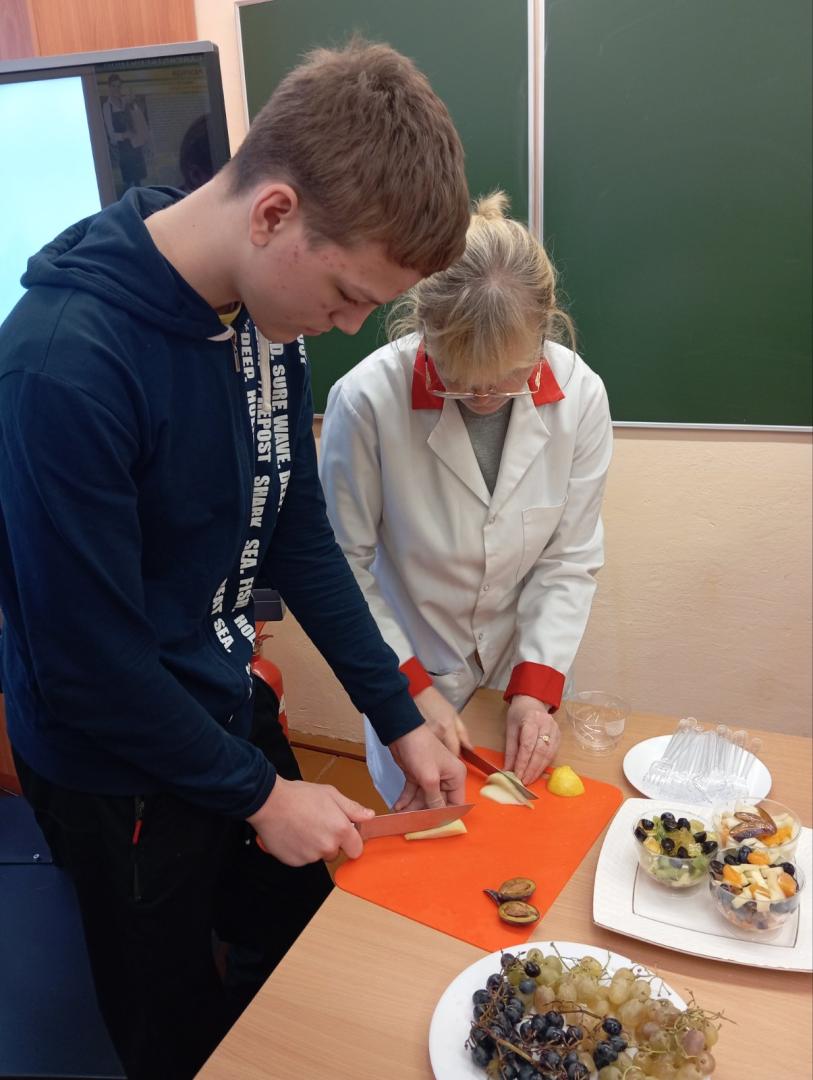 В рамках профориентационного проекта «Колледж. Моя будущая профессия» 29 ноября для учащихся школ состоялась презентация профессии "Повар": был проведен мастер класс по приготовлению простых блюд. Под руководством опытных мастеров ребята ловко нарезали фрукты для фруктовых салатов, проявляли фантазию при приготовлении канапе. Не обошлось без дегустации: было по особенному вкусно.