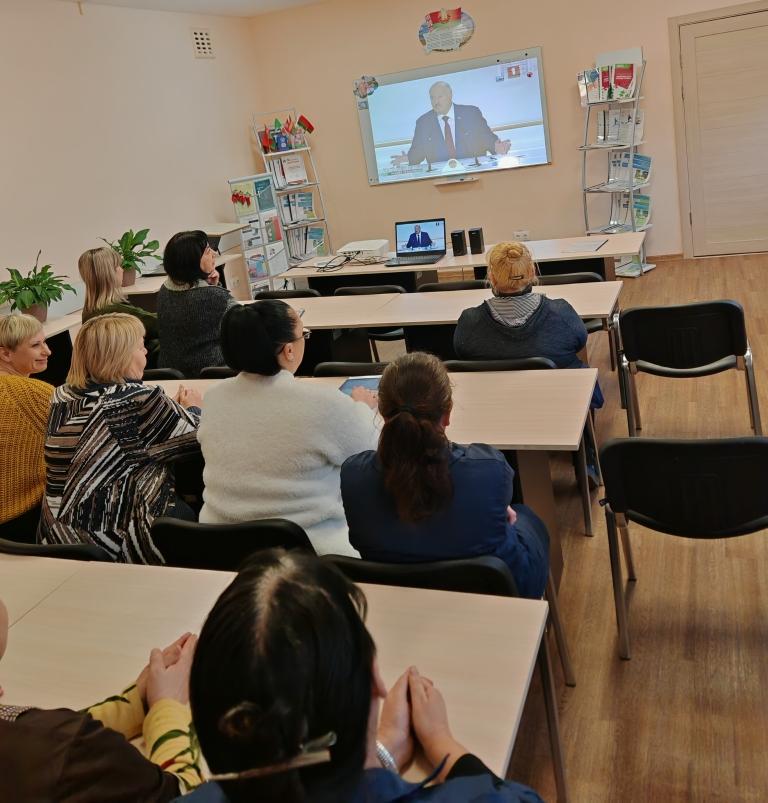 Работники учреждения образования "Хойникский государственный колледж" со всей страной второй день слушают основные направления развития страны на следующие пять лет. "Цели, которые мы определяем как главные, - это всегда ответы на два простых вопроса: чего мы ждём от государства и что готовы мы сделать, чтобы государство сохранилось привычный и комфортный для нас социальный уклад? Ответы на поставленные мной вопросы и есть стратегия страны, устремленной в будущее ", - подчеркнул А. Г. Лукашенко