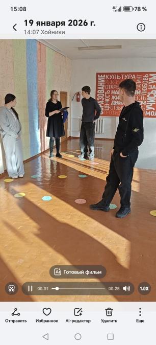 19.01.2026 в рамках Недели белорусский науки учащиеся 1 и 2 курсов приняли участие в пошаговой интерактивной игре "Тропою знаний". Ребята активно отвечали на вопросы, проявляли логику и смекалку. 3 место заняла команда группы 26, 2 место - команда группы 25. Победу одержала команда группы 15.