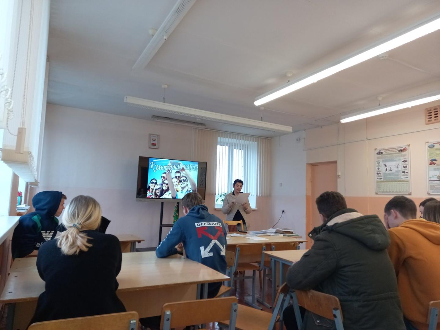 В рамках плана работы на зимние каникулы, педагогом-организатором Пархоменко Г.В. проведена викторина «Культурная нация». В проведении викторины приняли участие учащиеся 1-2 курсов обучения, которые были поделены на две команды: «Фиксики» и «Смурфики». Победу одержала команда «Смурфики», которая была награждена сладким призом.