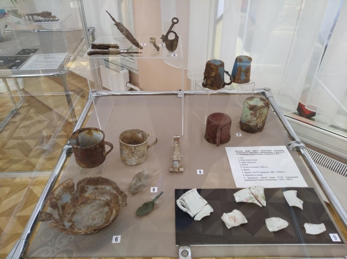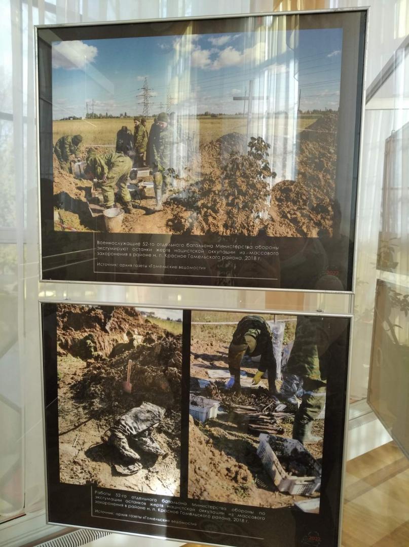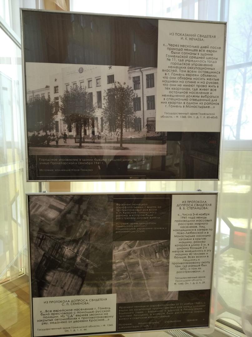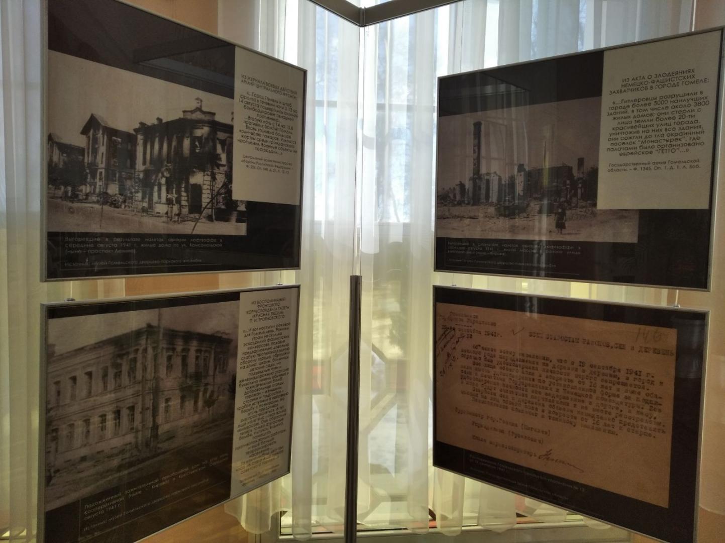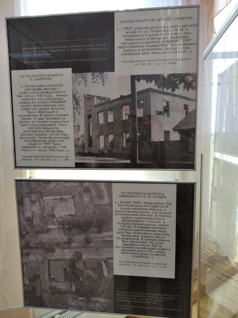 Выставка создана на основе подлинных архивных документов, фотографий и вещественных доказательств, которые изобличают страшную политику геноцида в Гомеле, достоверно рассказывают о фактах нацистского террора в отношении мирного населения и советских военнопленных, о тех трагических страницах в нашей истории, которые забвению не подлежат…