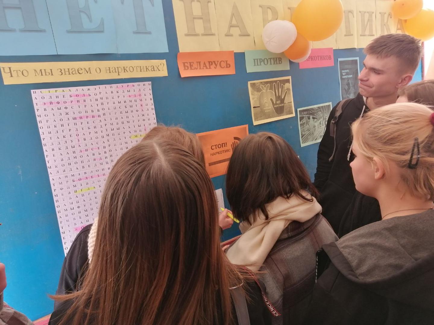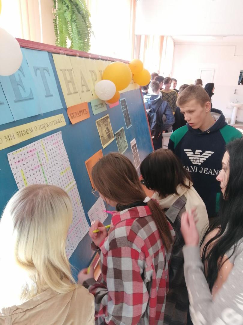 10 марта 2022 года в УО «Хойникский ГПЛ» в рамках областной декады по противодействию преступлениям в сфере незаконного оборота наркотиков «#НаркобизнесSTOP», была проведена акция ПО ОО «БРСМ» «Живи ярко без наркотиков», с раздачей тематических буклетов, изготовленных учащимися, по вопросам предупреждения употребления и распространения наркотиков (административная и уголовная ответственность за данные противоправные поступки, разъяснение примечания к ст.328 УК Республики Беларусь, последствий употребления наркотиков и т.д.).