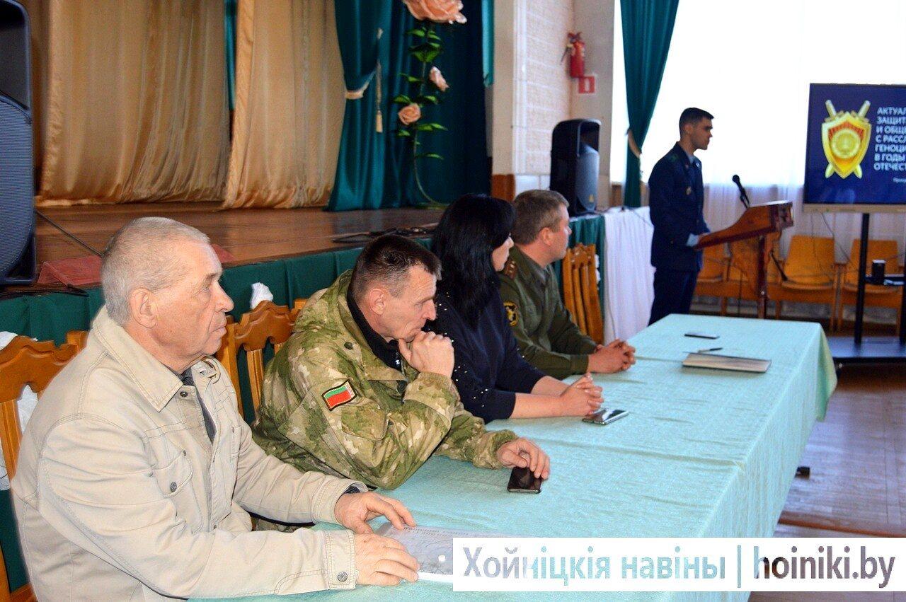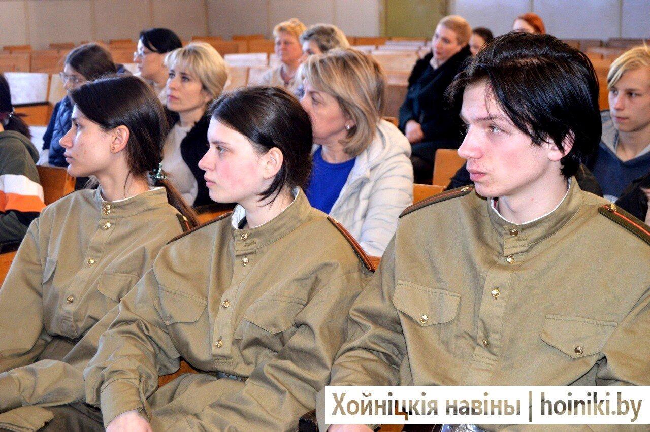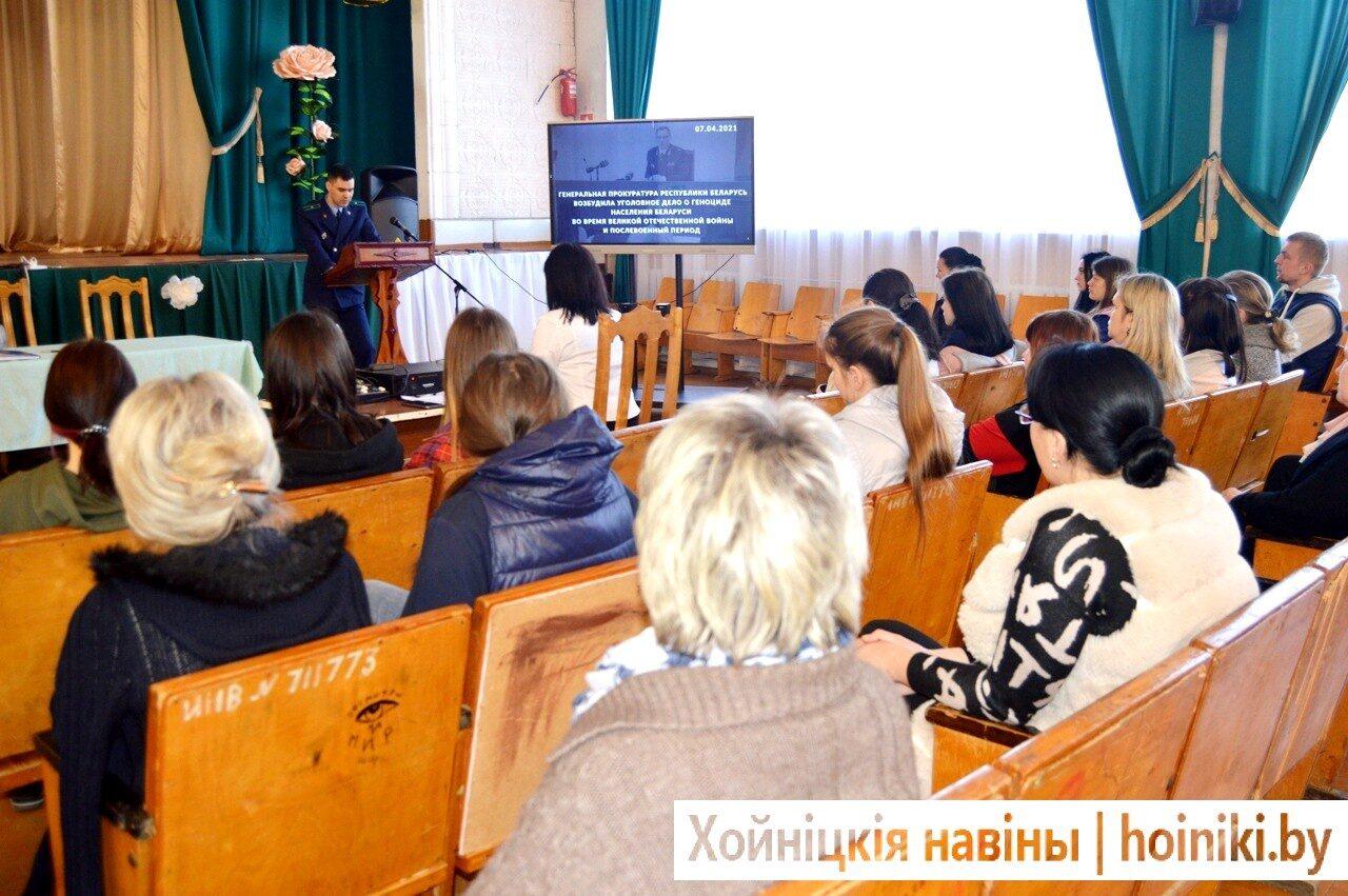22 марта 2022 года в актовом зале лицея проведен общелицейский урок «О чем звонят колокола Хатыни?», приуроченный 79-ой годовщине трагедии в деревне Хатынь. Участие в нем приняли прокурор Хойникского района Судом А.А., заместитель военного комиссара военкомата Брагинского и Хойникского районов, начальник мобилизационной группы майор Щевкун И.Н., а также энтузиасты в деле сохранения исторической памяти – командир поискового отряда Медков А.В. и заместитель председателя ветеранской организации Блищ М.И..
