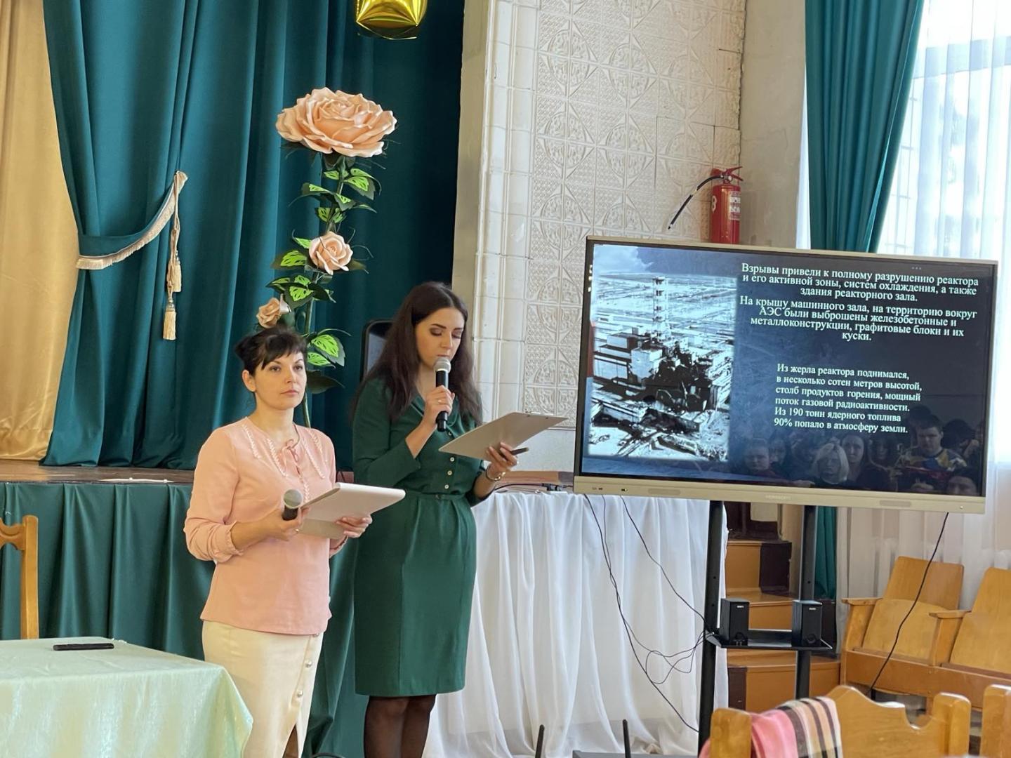 В ходе него ведущие рассказали ребятам о трагедии Чернобыля, о подвиге ликвидаторов аварии, о том, как хрупок окружающий мир, а для более наглядной демонстрации масштабов катастрофы и освещения экологических проблем, которые она повлекла за собой, к просмотру был предоставлен видеоряд «Чернобыль: трагедия, подвиг, предупреждение…».