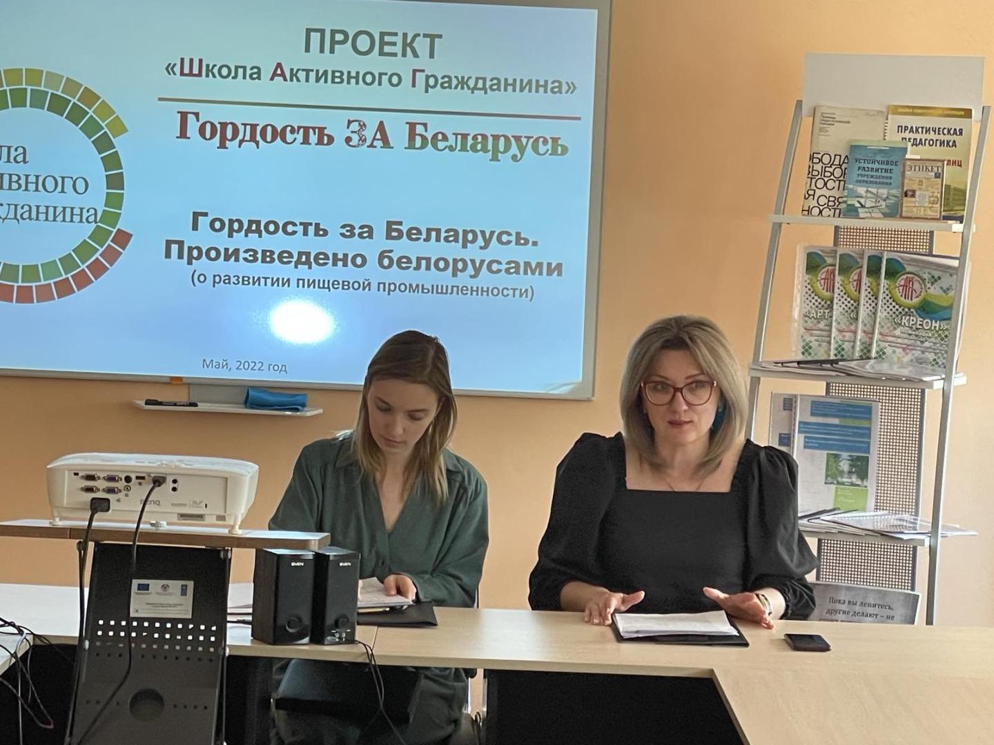 26.05.2022г. прошел информационно-образовательный проект «Школа Активного Гражданина» на тему: «Гордость за Беларусь. Произведено белорусами» (о развитии пищевой промышленности) с участием председателя профкома работников АПК Вергейчик А.О. и врача-интерна РайЦГЭ Туровской А.М.