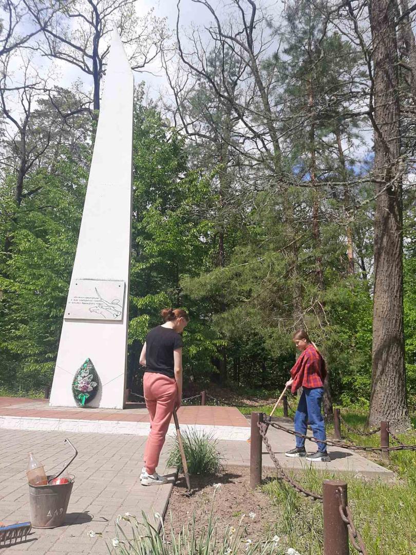 25.05.2022 волонтерский отряд «Кто, если не мы» продолжает участвовать в акции «Обелиск» - акции по уборке территории памятников погибшим в Великой Отечественной войне.