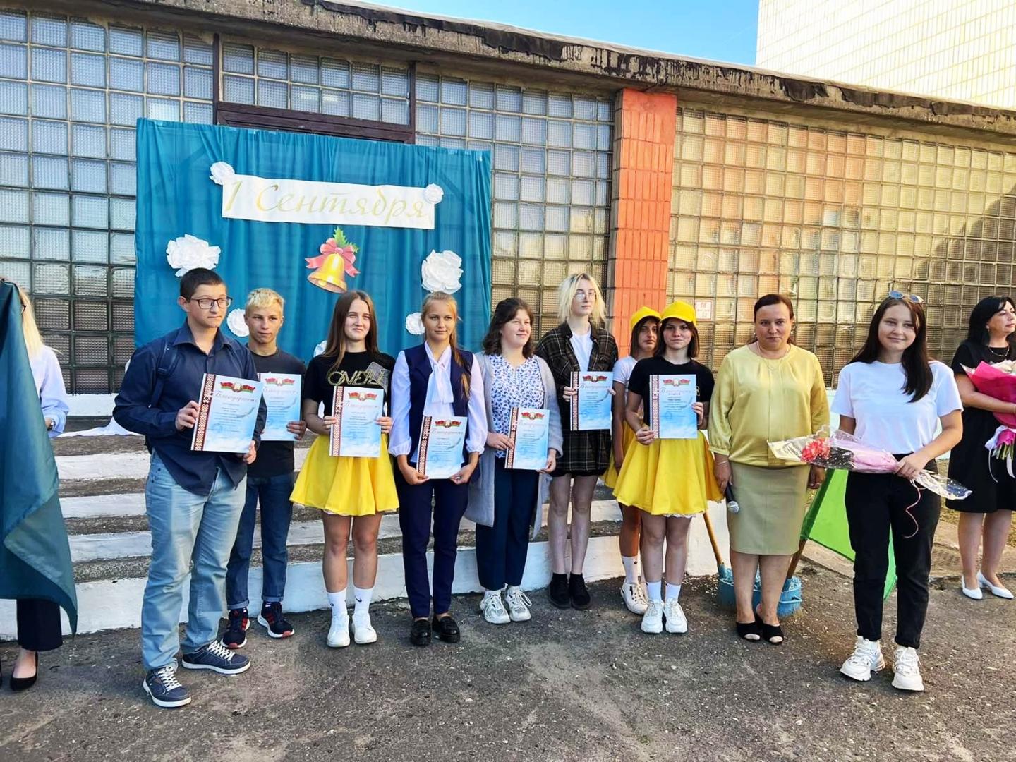 В ходе торжественной линейки была объявлена благодарность 11 учащимся, добросовестно трудившимся в период летних каникул в составе волонтерского отряда и трудовых проектах.