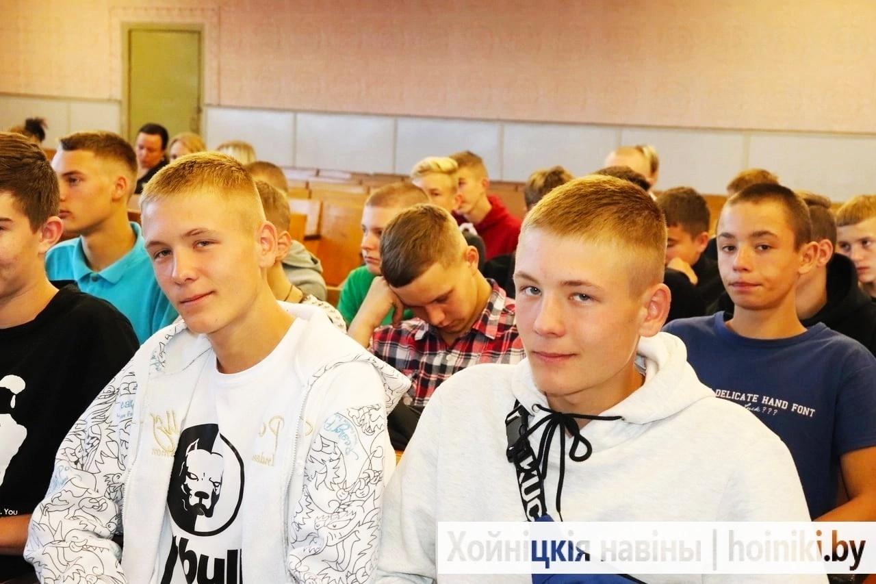 02.09.2022г. проведено информационно-разъяснительное мероприятие для учащихся первого курса обучения с участием субъектов профилактики района: Кушнером С.Н., заместителем председателя Хойникского райисполкома, Якуниным Н.Н., заместителем начальника ХойникскогоРОВД, Токарской О.В., заместителе председателя КДН Хойникского райисполкома.