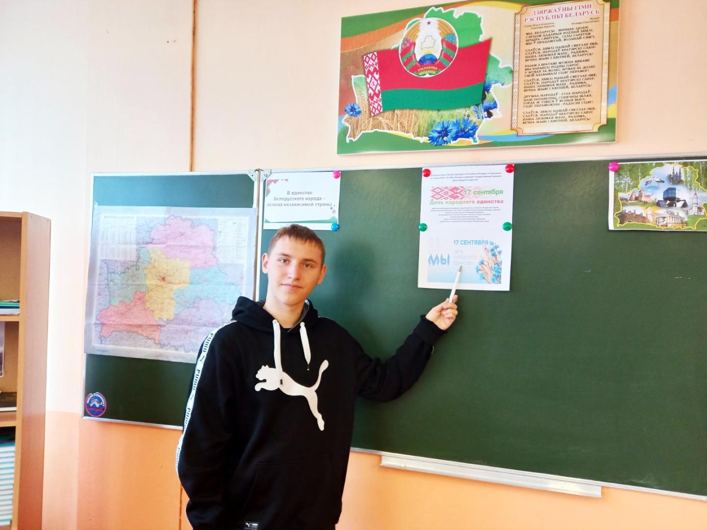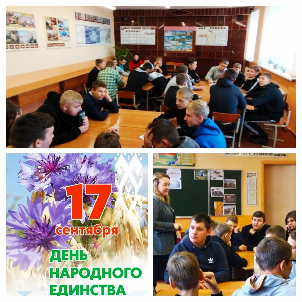 16.09.2022г., в преддверии государственного праздника Дня народного единства, во всех учебных группах УО «Хойникский ГПЛ» прошел единый урок на тему: «Беларусь – страна мира, дружбы и добрососедства».