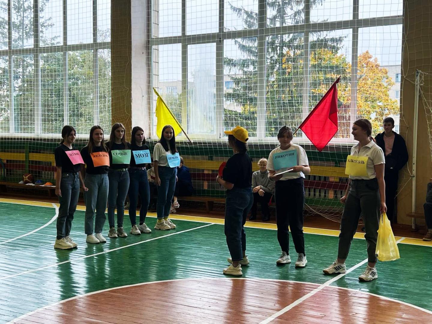 28.09.2022г. в УО «Хойникский ГПЛ», в рамках межведомственной информационной акции «Наркотики. Ответственность Последствия», проведено спортивное мероприятие «Спорт против наркотиков!». Соревновались сборные команды учащихся 1 и 2 курсов обучения: «Стрела» и «Медведи», по 8 учащихся каждая. Мероприятие включало в себя 7 эстафет. В перерывах между эстафетами выступали учащиеся с танцевальными номерами и сценками, пропагандирующими ЗОЖ. В жюри были приглашены: инспектор ИДН Апанасюк Я.В., специалист РК ОО «БРСМ» Мельник А.В., врач РайЦГЭ Туровская А.М., председатель ученического самоуправления лицея Скидан А.