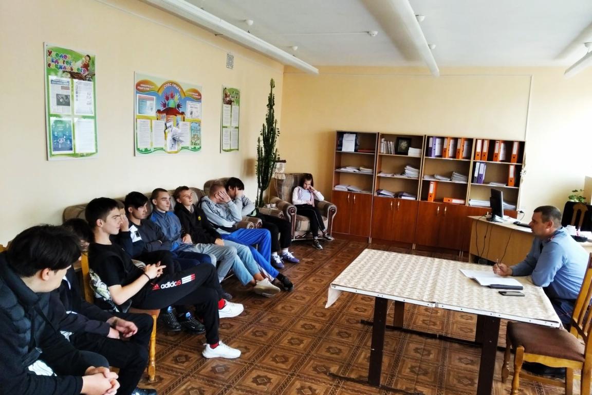 С целью профилактики противоправного поведения несовершеннолетних, провел разъяснительную работу с учащимися учетной категории, начальник ИДН Хойникского РОВД Вергейчик С.М.