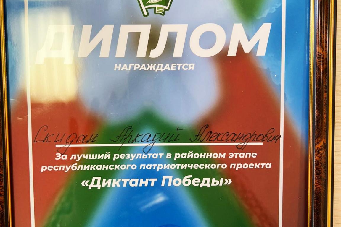 Учащиеся УО «Хойникский ГПЛ» приняли участие в новом республиканском патриотическом проекте «Диктант Победы». Победителем районного этапа стал учащийся 3-го курса обучения Скидан Аркадий, который обучается по специальности «Торговое дело общественное питание».