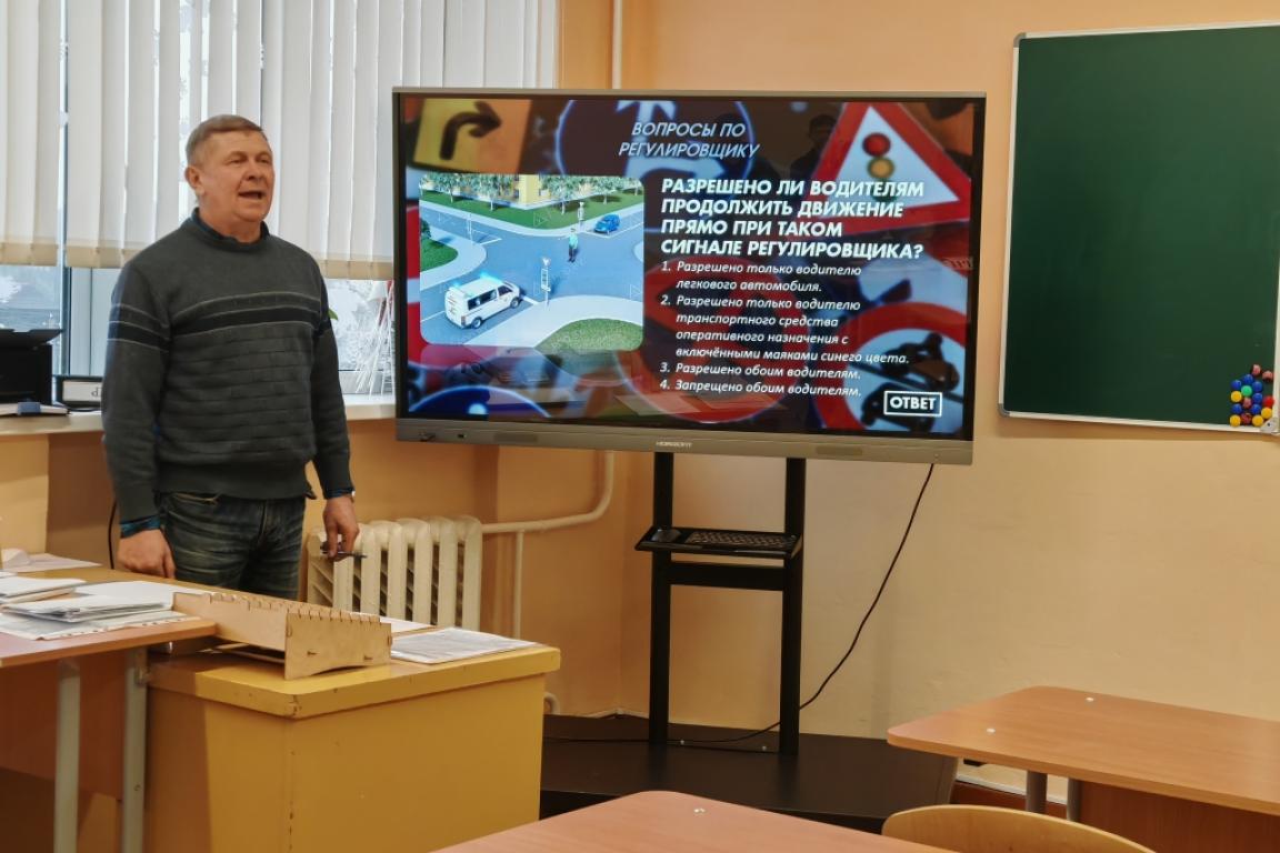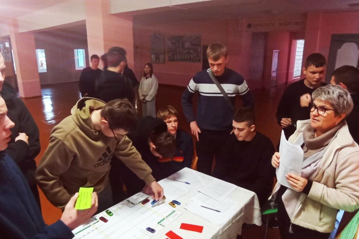 Ребята отвечали на вопросы, предлагали свои варианты, показывали детали двигателя, на скорость меняли лампы указателей поворота.