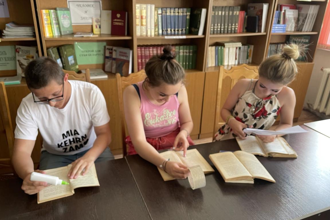 С 06.06.2022г. по 10.06.2022г. в лицее была организована работа по проекту УТЗиСЗ Хойникского райисполкома, в свободное от учебных занятий время. В составе проекта работали 10 учащихся, которые были заняты ремонтом библиотечного фонда лицея.