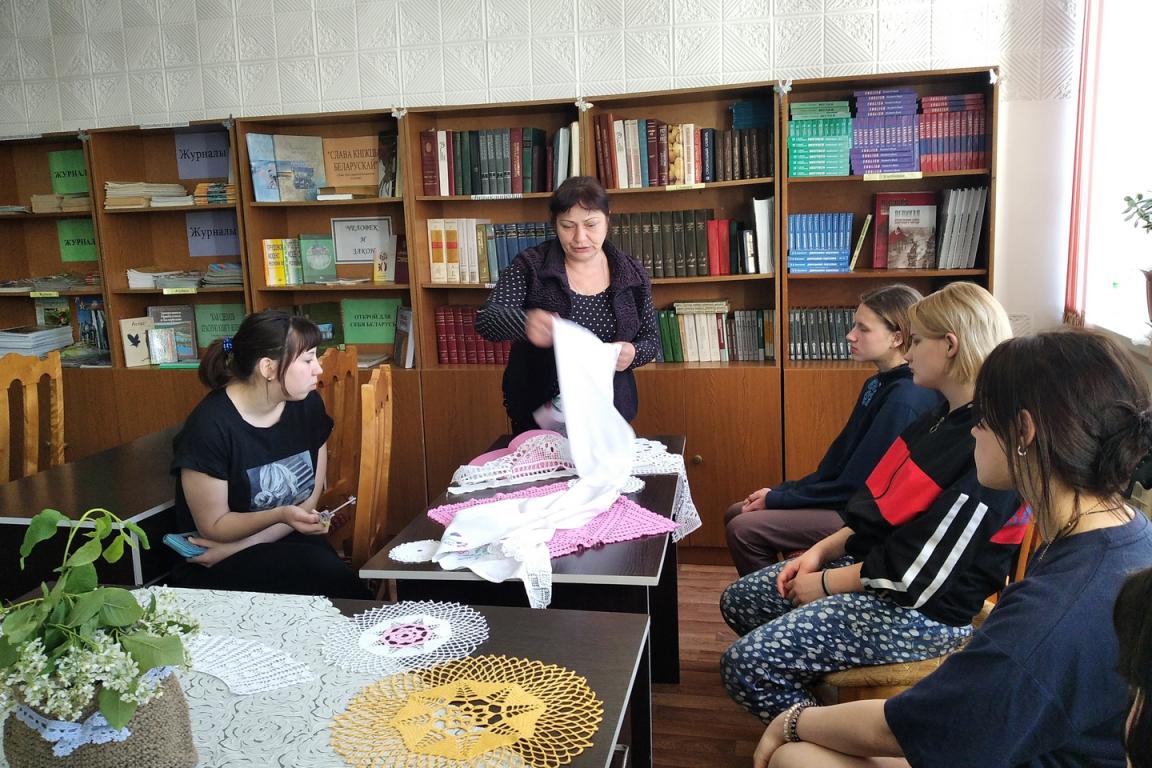 В библиотеке прошел мастер-класс по вязанию крючком. Девочки были в восхищении от необычайной красоты кружевных салфеток, накидок, шляпки. Они попробовали связать крючком, простейший узор, с чередованием воздушных петель и столбиков с накидом.