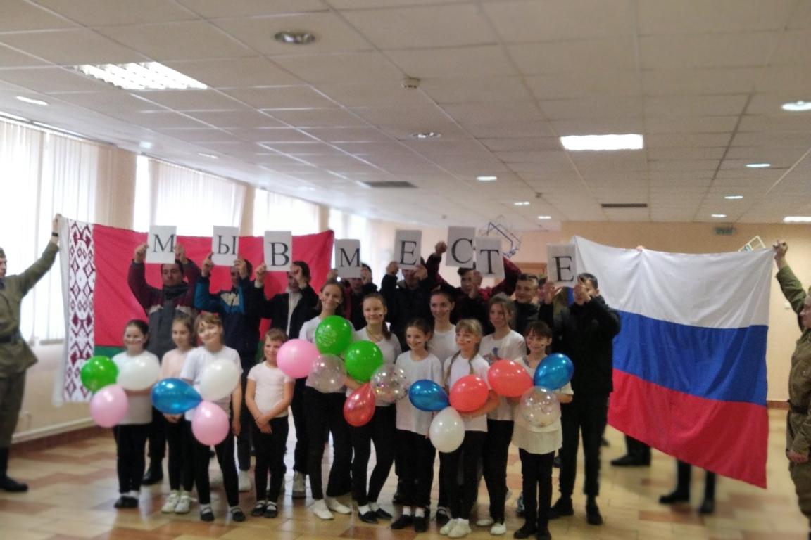 Ко дню единения народов России и Беларуси, прошел тематический флешмоб «Мы вместе», в котором приняли участие ребята нашего лицея, поисковой отряд «Молодая гвардия» и танцевальный коллектив «Незабудки» РДК. Пригласили и почетных гостей: личный состав военкомата Хойникского района, заместителя председателя ветеранской организации.