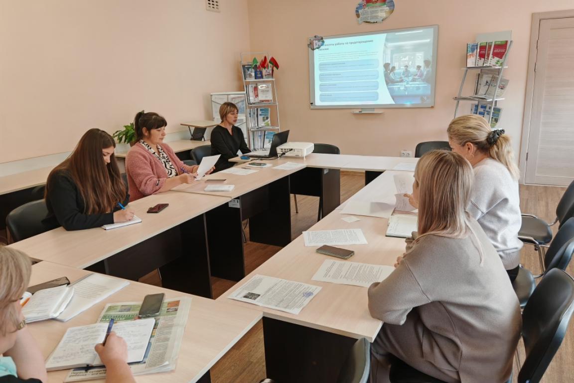 Председатель МО, куратор 36 группы, Черкас О.Н. подробно остановилась на методических рекомендациях для педагогических работников по предупреждению, профилактике и устранению насилия в учреждении образования. Участникам семинара были розданы памятки - алгоритм выявления насилия в учреждении образования, а также в семье.