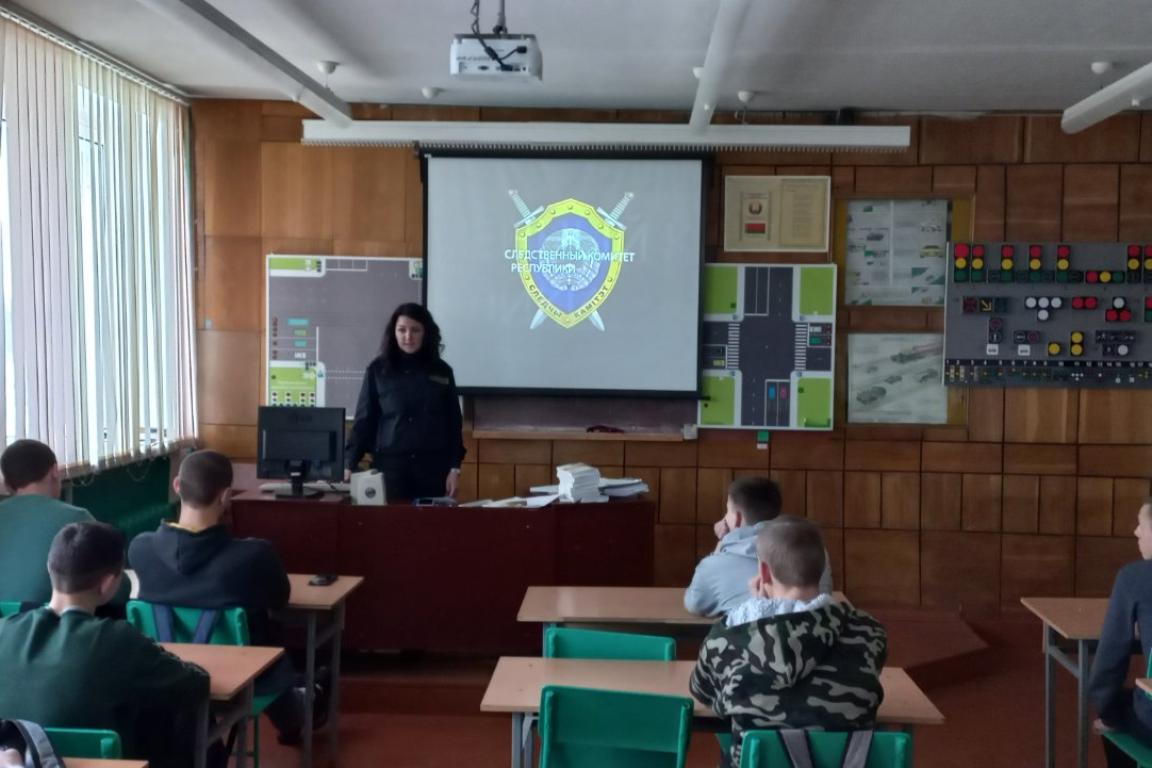 Профилактическую работу с учащимися группы №35 провела старший следователь Хойникского РОСК Коток О.В. Мероприятие проведено с целью предотвращения совершения противоправных действий, как несовершеннолетними, так и совершеннолетними учащимися лицея.