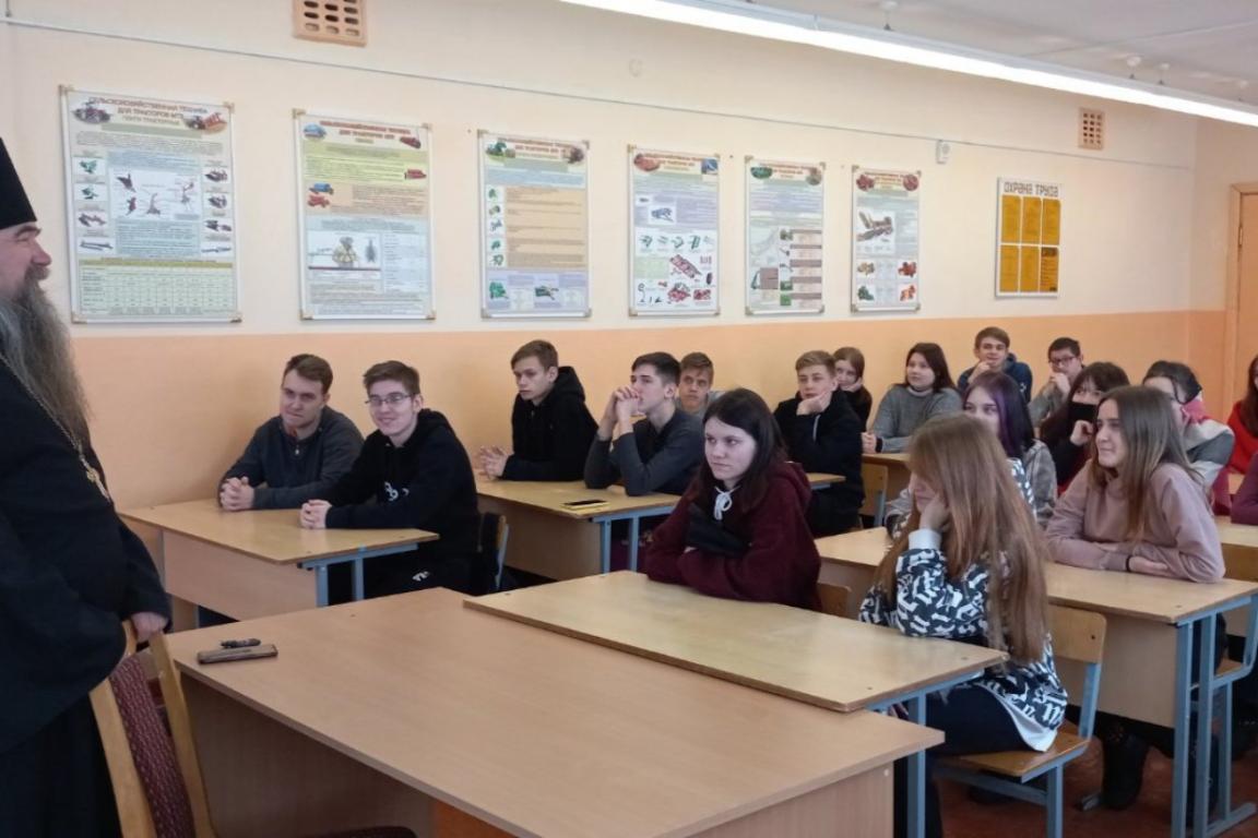 Отец Павел рассказал учащимся о конфессиональной политике в Республике Беларусь, которая направлена на поддержание и укрепление межконфессионального мира и согласия в белорусском обществе. Но самое главное достижение на сегодняшний день – это сохранение мира и покоя на нашей земле, отсутствие конфликтов на религиозной почве.